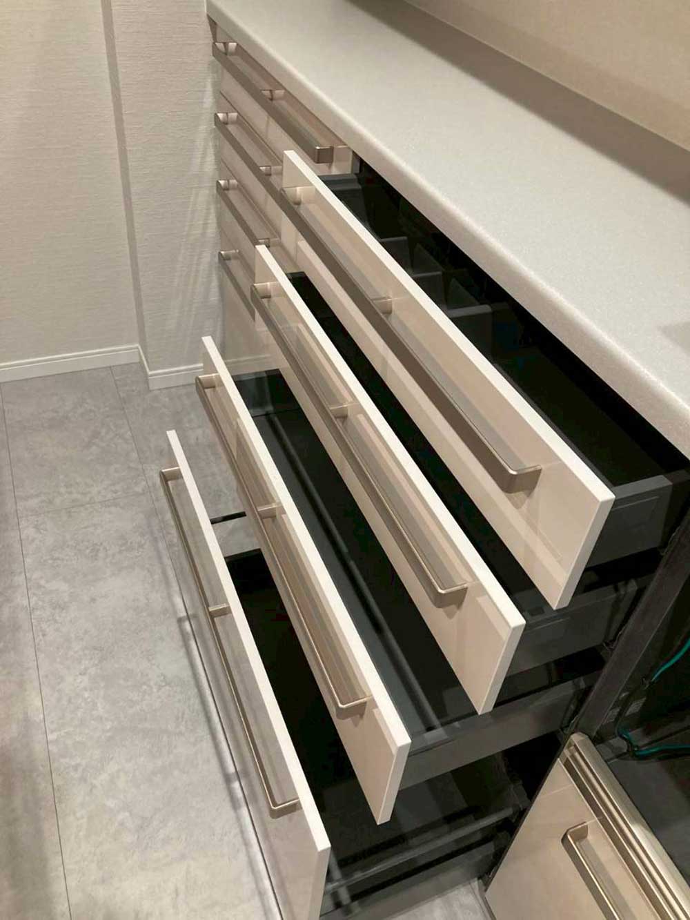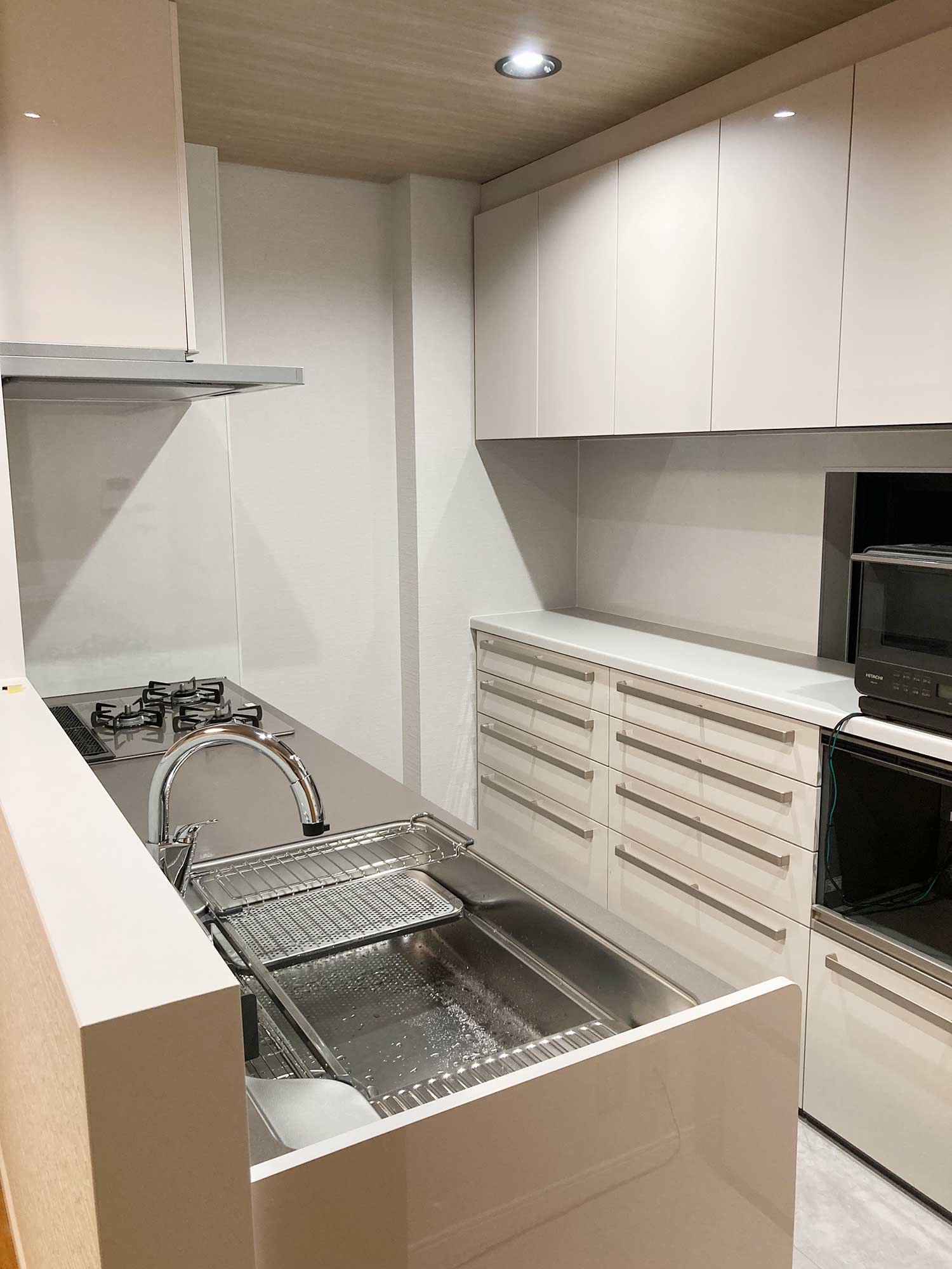 WORKS キッチンリフォーム HOME 施工事例 キッチンリフォーム キッチンリフォーム【リシェル】 LIXILリフォームショップ ライファ茅ヶ崎 キッチンリフォーム【リシェル】 藤沢市 A様 2026年3月 壁付けのキッチンから対面式キッチンへ セラミックトップの天板が素敵なキッチンと背面のカウンター収納で 作業効率と収納力を兼ね備えた素敵なキッチンに。 床材はタイル調ですが、耐水性のある実用的でお洒落に変身 施工場所 藤沢市 費用 ~300万 建物種別 戸建 ビフォー・アフター その他の画像 前へ 次へ